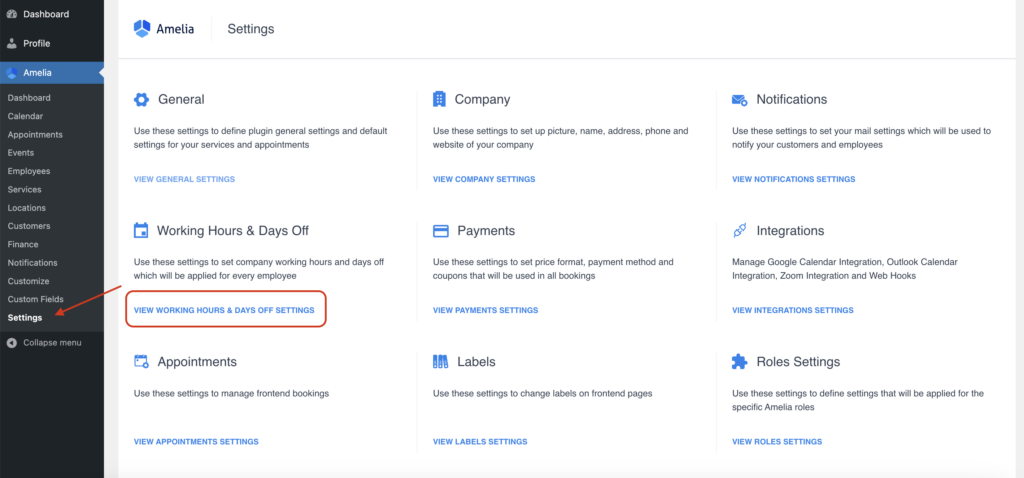 Amelia で勤務時間を設定する