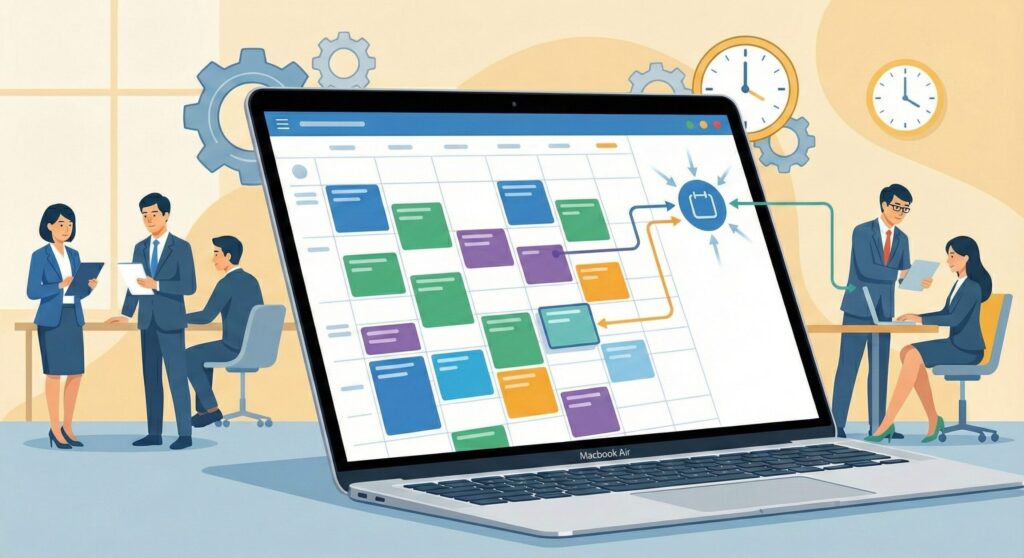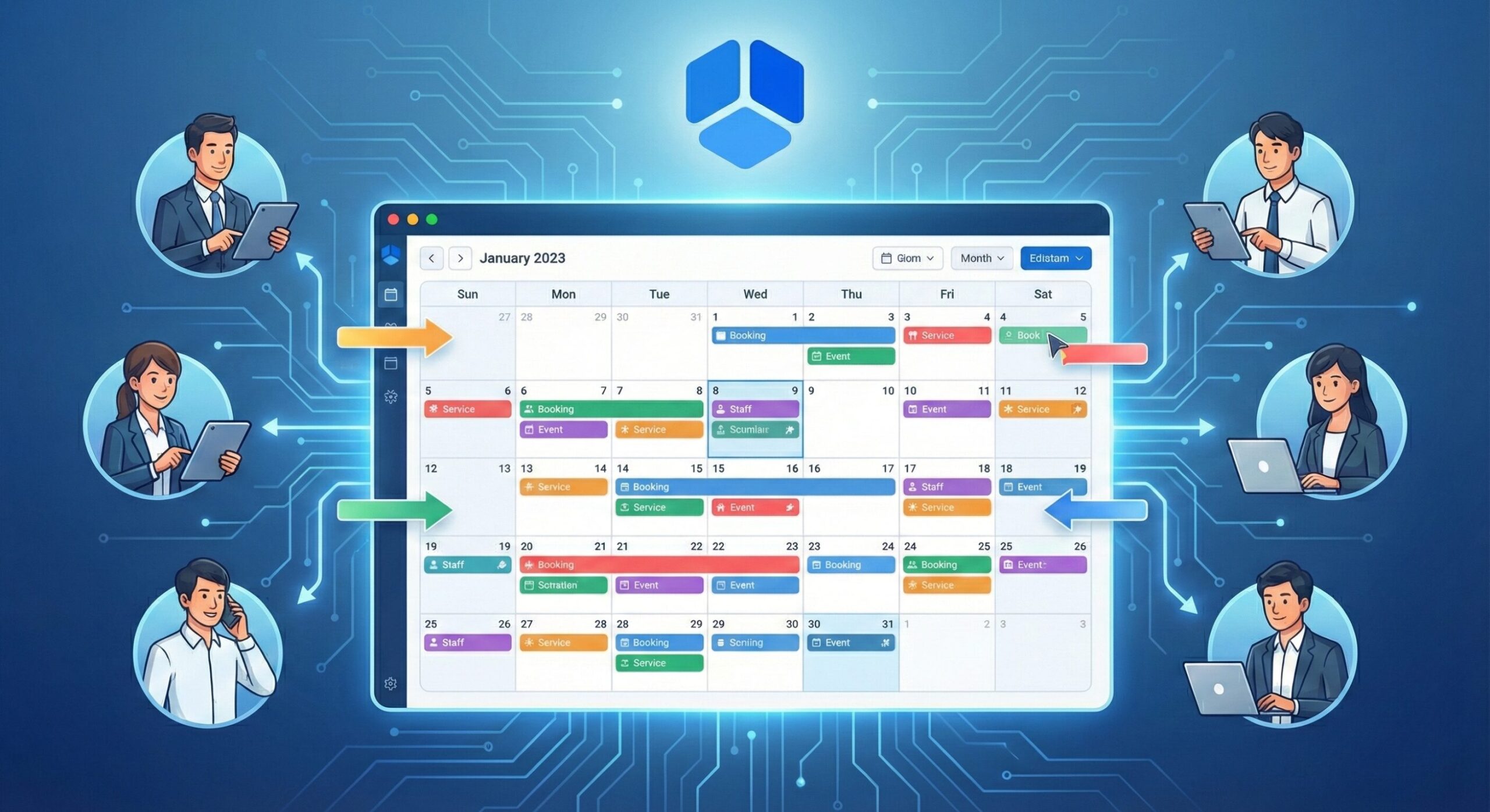 今日のビジネスにおいて、予約システムに求められるのは、お客様に魅力的な予約フォームを提供するだけでなく、管理者とスタッフが直感的に、かつ正確にスケジュール全体を把握・管理できる能力です。特に、複数のサービス、イベント、スタッフの予定が混在する場合、従来のスケジューラーでは確認作業に大きな労力を要します。