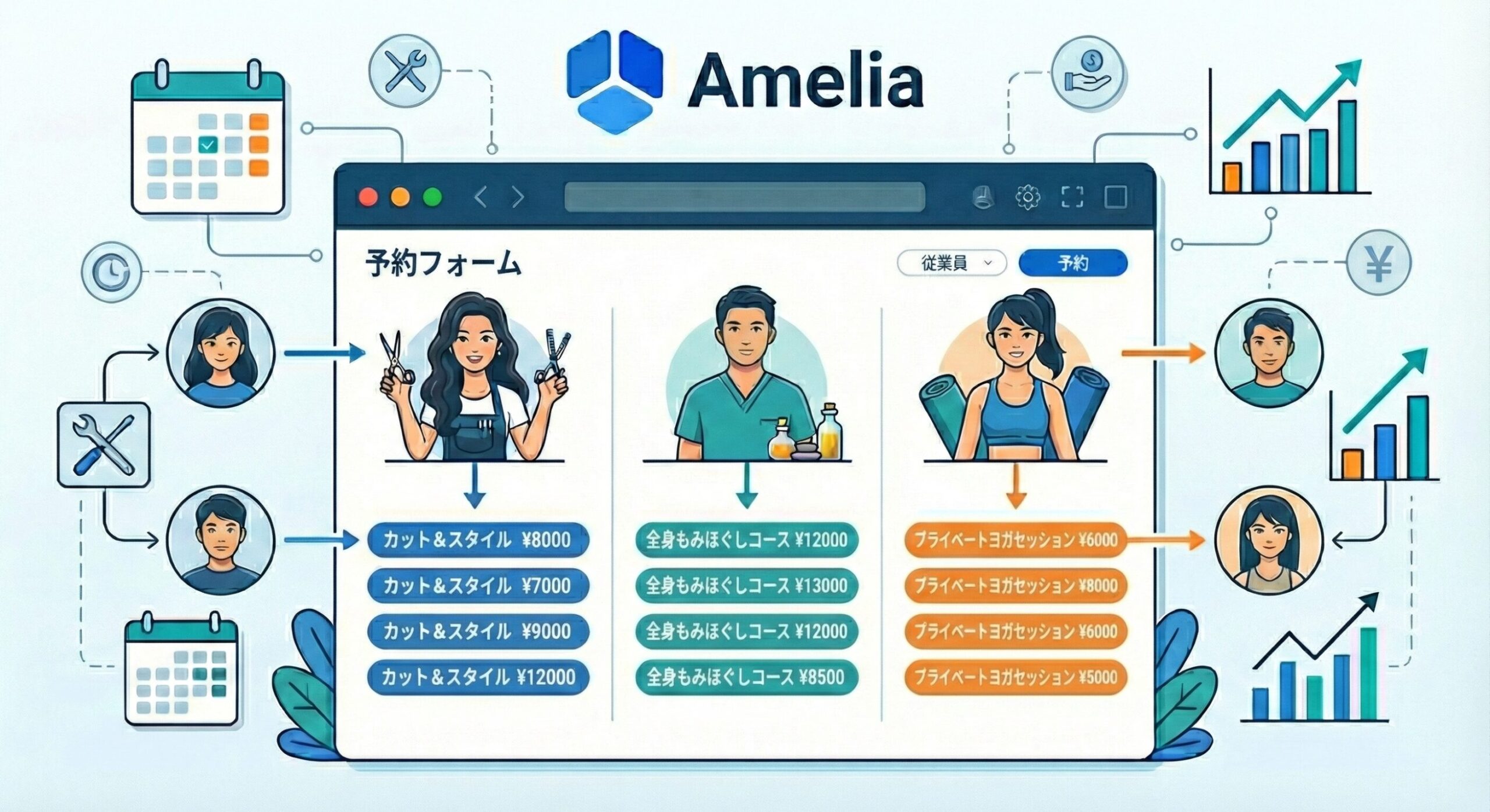 Ameliaが提供する強力なスタッフ管理機能と、それを活用したプロフェッショナルな予約フォームの構築方法を解説します。これにより、お客様は最適なスタッフを簡単に選び、ビジネスマンは複雑な価格設定やスケジュール管理から解放されます。