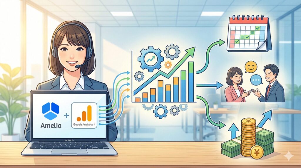 この記事では、Googleアナリティクス(GA)がデジタルマーケティングの未来を形作る上で果たす重要な役割について詳しく解説します。さらに、GoogleアナリティクスとAmeliaの連携が、企業のパフォーマンス向上にどのように貢献できるかについても考察します。この連携は単なる技術的な結合にとどまりません。データと戦略を結びつける架け橋となり、ユーザーエクスペリエンス(UX)の向上と予約数の増加へ向けた明確な道筋を提供します。