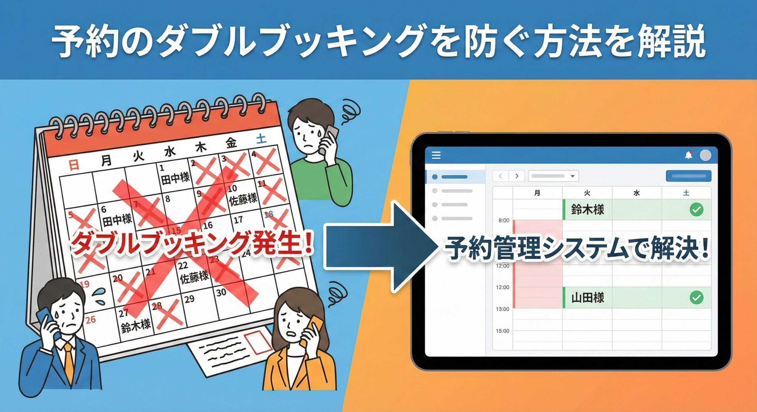 • ダブルブッキング: 同じ時間帯に複数の予約を入れること。
