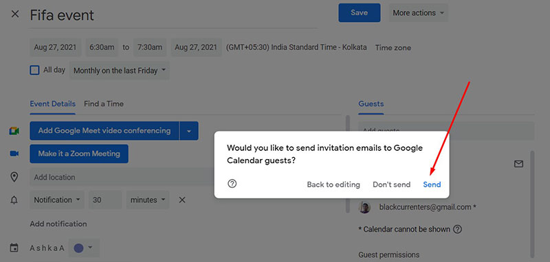GoogleカレンダーのイベントをOutlookカレンダーに追加したり、その逆を行ったりする別の簡単な方法は、招待状を利用することです。