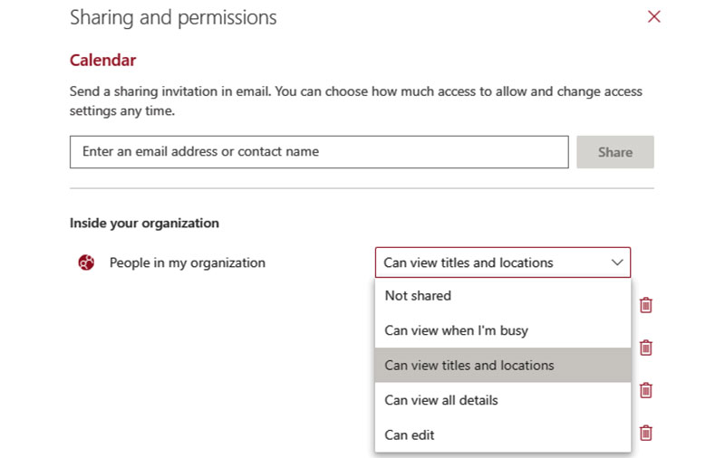 注意点: 共有設定の変更は、カレンダーをどこで使用するかによって異なります。自宅で個人的に使用する場合は権限の変更は簡単ですが、仕事で利用する場合は、まずITチームに相談する必要があります。権限や共有設定の変更についてサポートを受けることができます。