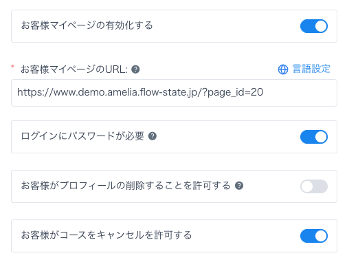 • 有効の場合:お客様は送信されたリンクに初めてアクセスした際にパスワードの作成を求められます。このパスワードは、その後マイページへのアクセスに使用されます。「予約承認済み」または「予約保留中」のメール通知にお客様マイページへのリンクを含めると便利です。