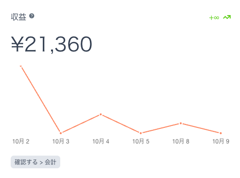 ダッシュボードの最初のセクションには、現在選択されている日付範囲の主要な指標が表示され、3つのブロックに分かれています。