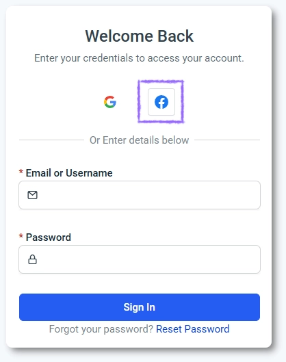 Facebookソーシャルログインを使用すると、お客様やスタッフは自分のFacebookアカウントでサインインできるようになります。これにより、Ameliaの各マイページへのアクセスが簡素化され、予約プロセス中の自動入力が可能になります。連携を有効にしてMetaアプリと接続すると、Ameliaは認証されたFacebookのプロフィールデータに基づいてユーザーを認証できます。