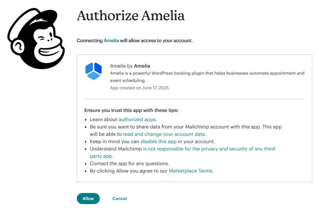 これで完了です。AmeliaがMailchimpアカウントに接続されました。
