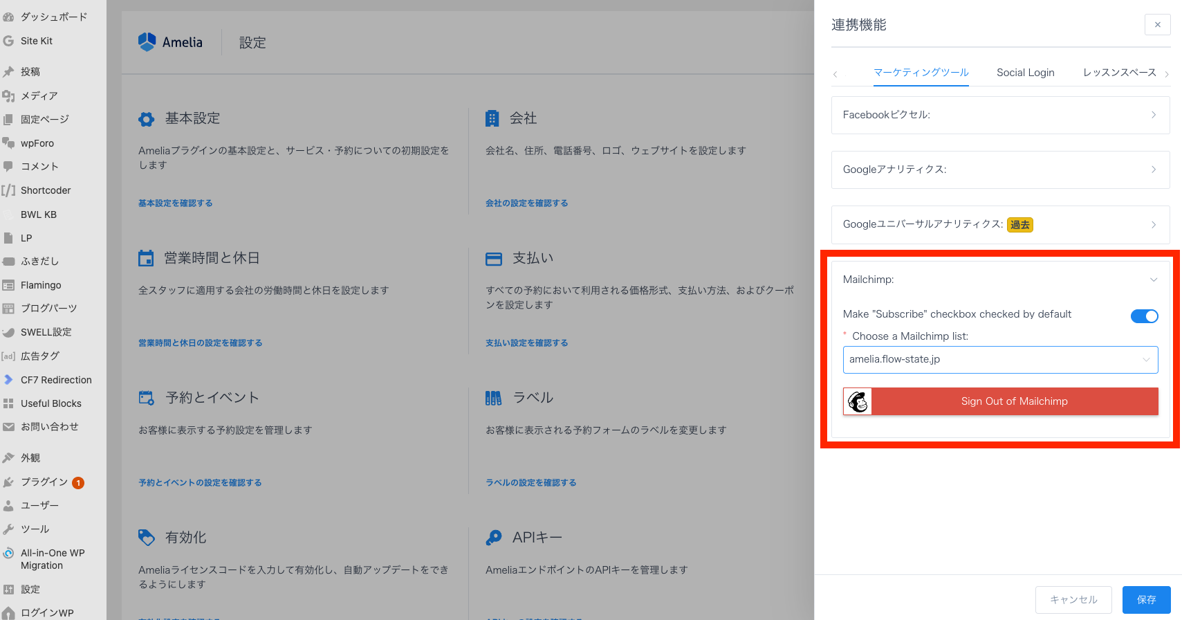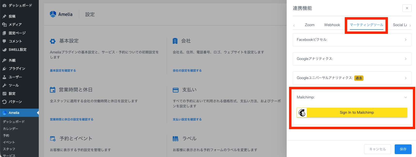 - AmeliaはMailchimpのメーリングリストを自動的に取り込みます。