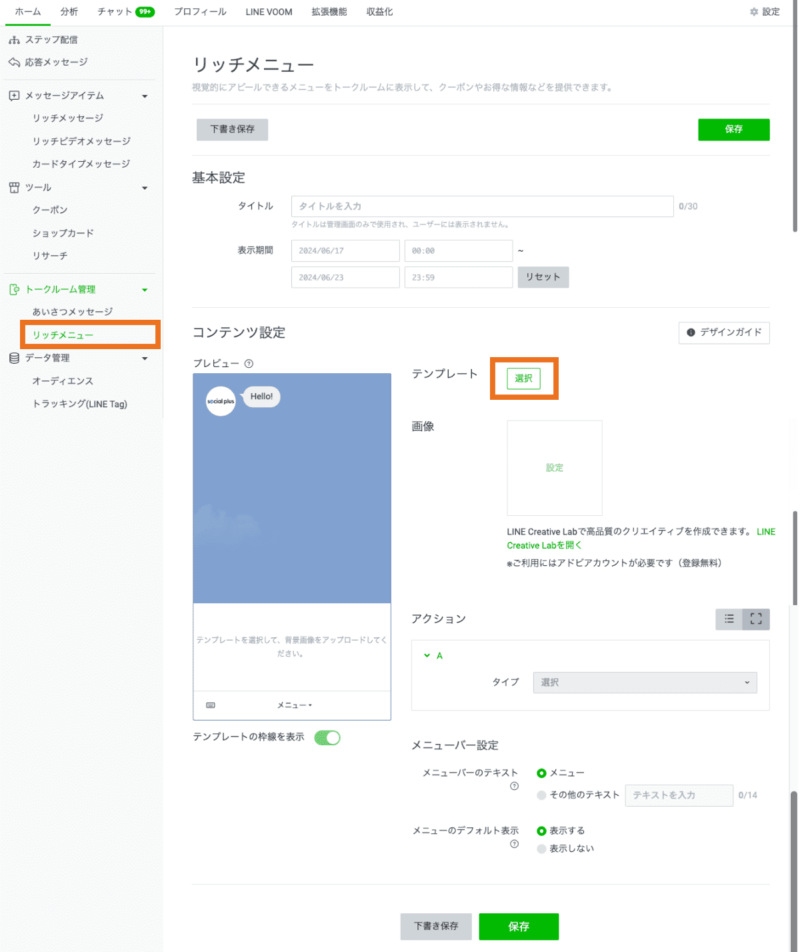 リッチメニューを選択