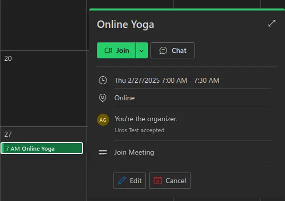 これで、オンライン予約にMicrosoft Teamsを使用する準備が整いました。新しい予約が作成されるたびに、スタッフのOutlookカレンダーに追加されます。Ameliaで「イベントの参加者を追加」オプションを有効にすると、お客様はOutlookカレンダーから自動的に招待を受け取り、予約を自身のカレンダーに追加できます。イベント内には青いMicrosoft Teamsボタンが表示され、スタッフとお客様の両方がそこからミーティングに参加できます。