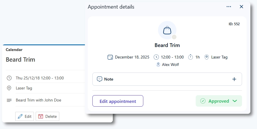 スタッフがOutlookに接続し、サービスがオンライン会議として設定されている場合、Ameliaは予定のMicrosoft Teamsリンクも生成し、Outlookカレンダーのイベントとお客さまへの通知の両方に含めます。これにより、スタッフはOutlookを日々のスケジュール管理ツールとして引き続き使用でき、Ameliaは常にお客様に正確な空き状況を表示できます。