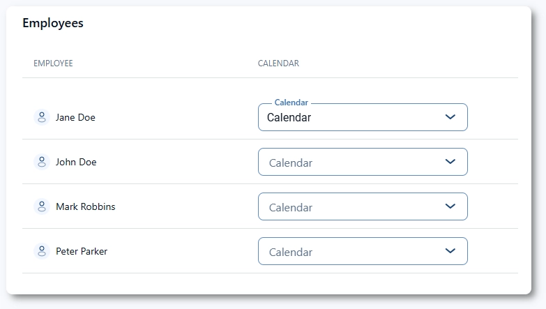 ただし、これは管理者が既にそのスタッフにカレンダーを割り当てていない場合に限ります。管理者が基本設定を通じてカレンダーを割り当てた場合、スタッフはその接続を上書きしたり切断したりすることはできません。