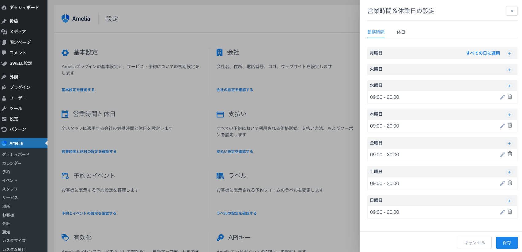 注意点: 会社全体の営業時間を変更しても、すでに個別のスケジュールを設定しているスタッフには適用されません。しかし、この変更は、今後新しく追加するすべてのスタッフに適用されます。