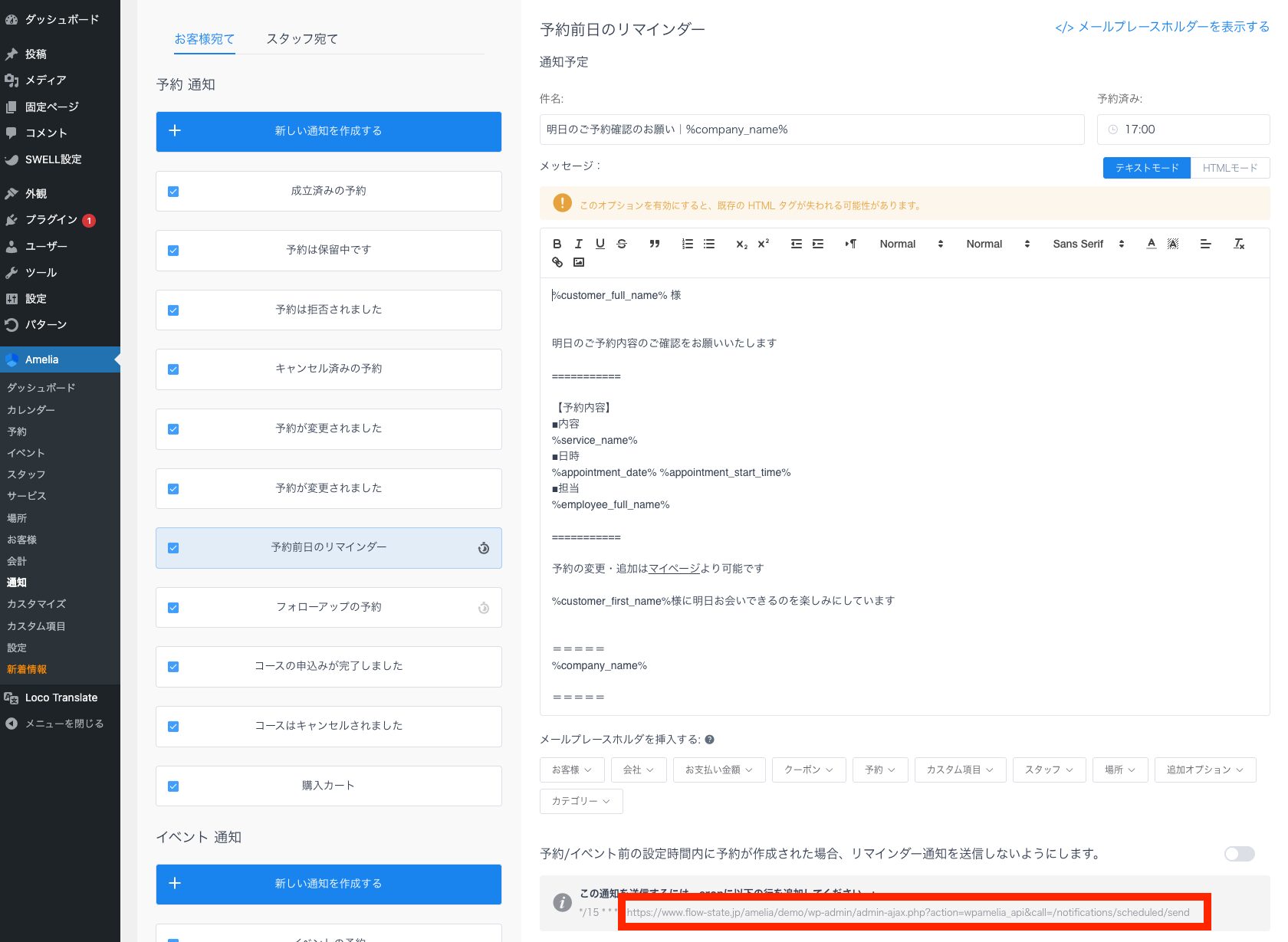 cronは15分ごとに実行され、送信するメールがあるかどうかを確認します。Ameliaの通知設定では、スケジュール通知は毎日特定の時間に実行されるように設定されています。例えば、その時間を15:00に設定すると、cronがその時間以降に実行されたときにメールが送信されます。
