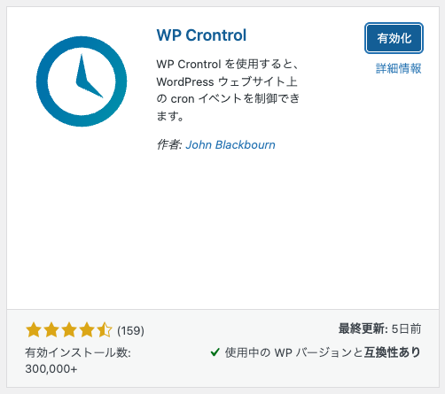 まずはWordPressにWP Crontrolプラグインをインストールして、有効化します。