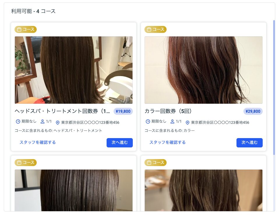 コースをサービスと一緒に使用する場合、予約フォームごとにコースの表示が異なります。