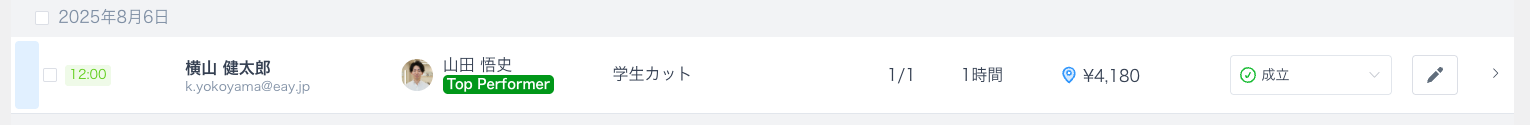 唯一の例外は、グループ予約で、通常の予約のお客様とコースから予約したお客様が混在している場合です。その場合、支払い方法、元の予約1件の料金、コースアイコンが表示されます。